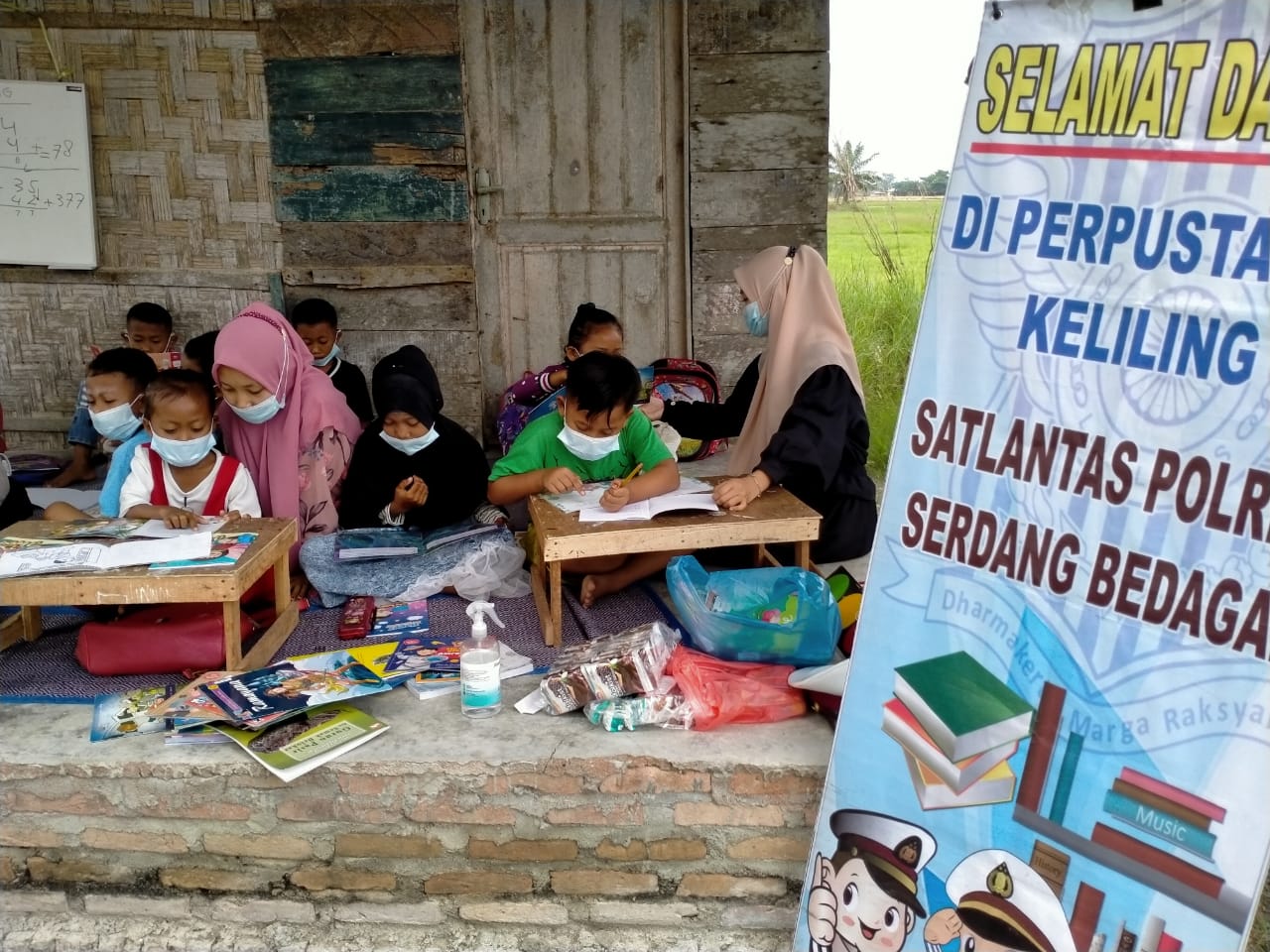 Suara Mabes, Sergai – Unit Dikyasa Sat Lantas Polres Serdang Bedagai (Sergai) menggelar kegiatan Perpustakaan Keliling di perkampungan serta himbauan Dikmas dan sosialisasi pencegahan Coronavirus Disease 2019 atau Covid- 19.