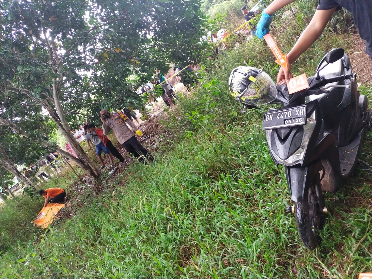 Setelah menerima laporan masyarakat, piket polres Beltim, Unit Identifikasi Sat Reskrim Polres Beltim, unit Resintel Polsek Manggar langsung menuju lokasi dan menemukan korban AM (32) sudah meninggal dunia, selanjutnya anggota melakukan olah TKP serta mengambil keterangan saksi-saksi di lapangan.