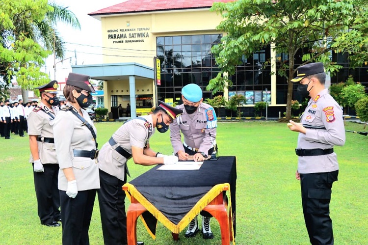 Kapolres Gunungkidul, dalam amanatnya mengatakan, mutasi jabatan merupakan suatu hal yang umum dalam organisasi, yang mana hal tersebut merupakan perjalanan dinas yang rutin terjadi dan bisa terjadi kepada siapa saja dijajaran Kepolisian Republik Indonesia.