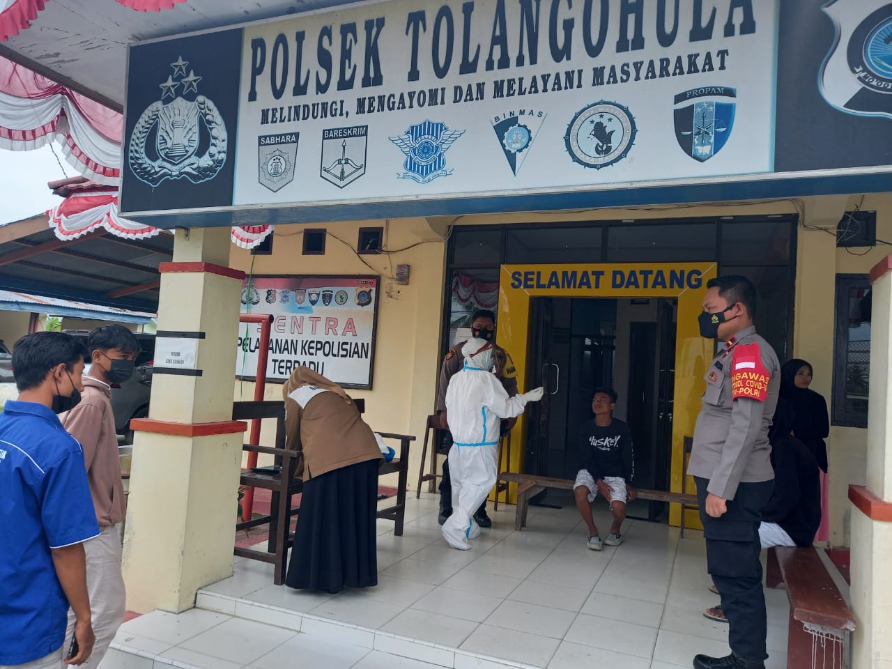 “Untuk giat ini, kami melaksanakan giat pendukung 3T (Testing, Tracing, Treatment) guna mengetahui positivity rate di wilayah tolangohula, yaitu tindakan pertama kami lakukan berupa testing kepada masyarakat yang tidak memakai masker. apabila hasil testing negatif kami akan memberikan masker dan memberikan bimbingan agar mematuhi protokol kesehatan,” ucapnya.