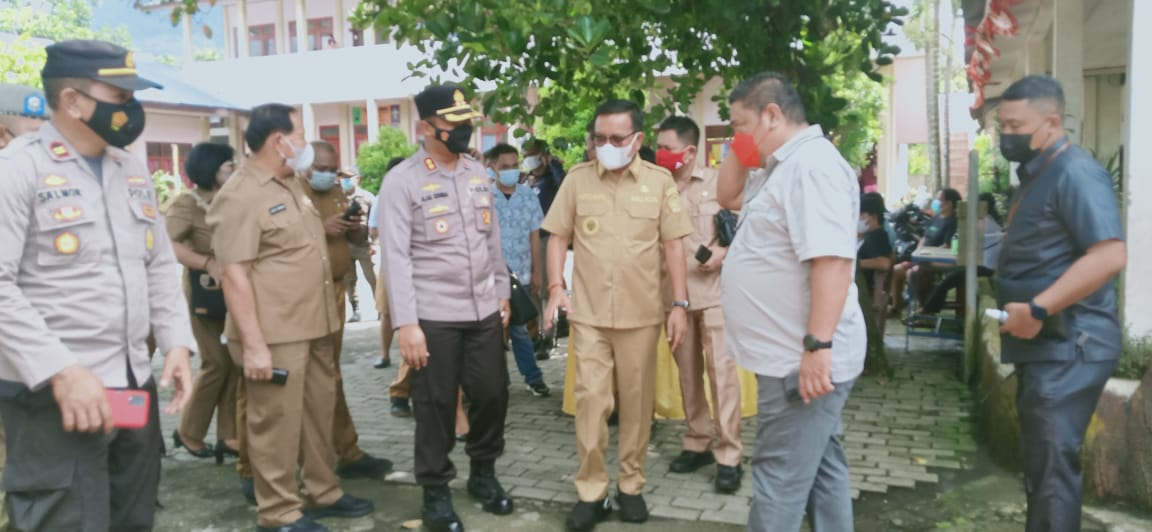 MediaSuaraMabes, Bitung — Walikota Bitung Ir. Maurits Mantiri, MM, Dan Kapolres Bitung AKBP Alam Kusuma S Irawan, S.H, S.IK, M.H. Turun Langsung memonitor vaksinasi covid – 19 anak usia 6 – 11 Tahun, di SDN Inpres 3 / 77 Danowudu Kec. Ranowulu Kota Bitung, turut di hadiri oleh, Asisten I Pemkot Bitung Julius Ondang, S.Pd, M.Si., Kadis Kesehatan Kota Bitung Dr. Pitter Lumingkewas, Kapolsek Ranowulu IPTU Andri Salmon, Camat Ranowulu Andre Nicolas Rantung, MAP., Kabag Protokol Pemkot Bitung Albert Sergius, SE, Kepala Sekolah SDN Inpres 3 / 77 Danowudu Vinny Clartje Kirojan, S.Pd.k. Selasa, (04/01/2022).