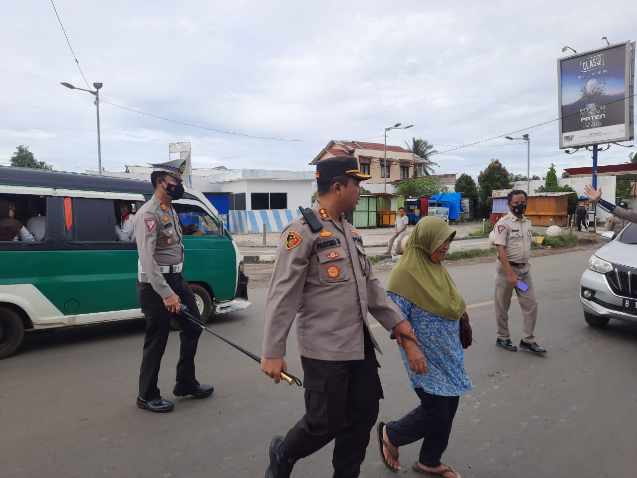 Selain itu Kapolres juga membantu Ibu-ibu yang hendak menyeberang jalan sekaligus memberikan himbauan kepada pengguna kendaraan agar tertib saat berlalu lintas dengan melengkapi surat kendaraan, memakai helm dan spion saat mengendarai kendaraan bermotor.