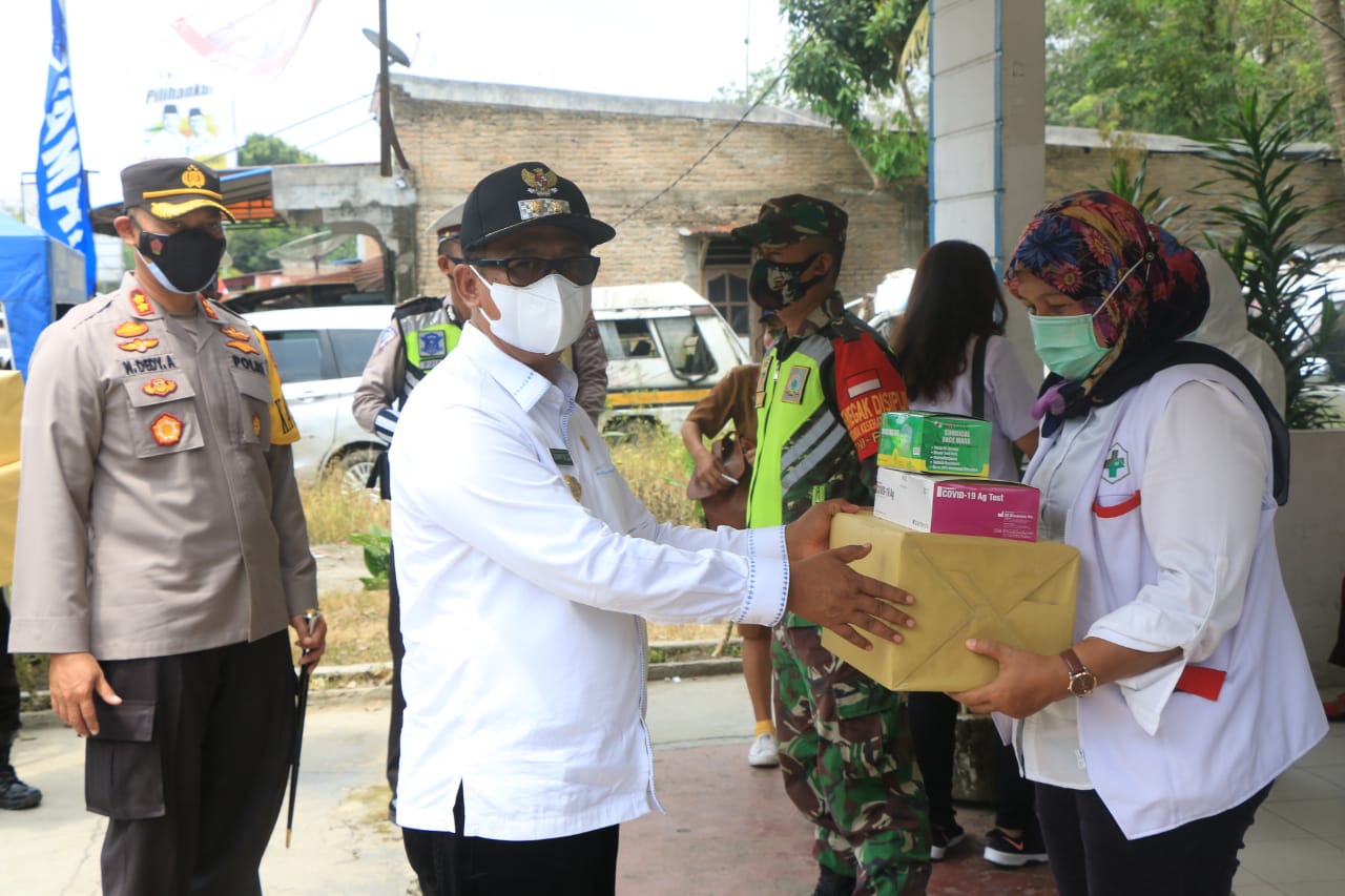 Saat berada di Pos Penyekatan, Wakil Bupati bersama Kapolres melakukan pengecekan serta kesiapan sarana dan prasarana di Posko penyekatan. Kemudian Wakil Bupati menyerahkan Alat Rapid Test Antigen dan perlengkapan lainnya, untuk mendukung pelaksanaan tugas penyekatan tersebut.