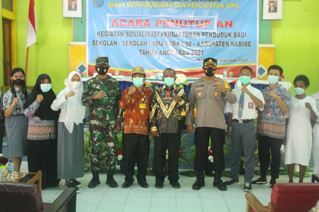 Hadir dalam kegiatan tersebut, Pejabat Bupati Nabire yang diwakili oleh Kepala Dinas P dan P Yulianus Pasang,. S.Pd,.M.Pd, Plt. Kepala Dinas Dukcapil Nabire Yermias Mote,.S.STP, Kapolres Nabire yang diwakili oleh Waka Polres Nabire Kompol Samuel D. Tatiratu,.SIK, Dandim 1705/NBR yang diwakili oleh Danramil Nabire Kota Mayor Inf. M. Rumamina, Direktur RSUD Nabire yang diwakili oleh sekertaris RSUD Nabire Steven Mareku,.S.Kep, Para Asisten , Kepala Dinas / Bidang / Bagian / Kantor dan Distrik Se-Kabupaten Nabire, Para Kepala Sekolah beserta Guru SMA / SMK Se-Kabupaten Nabire, Siswa – Siswi SMA dan SMK Se-Kabupaten Nabire.
