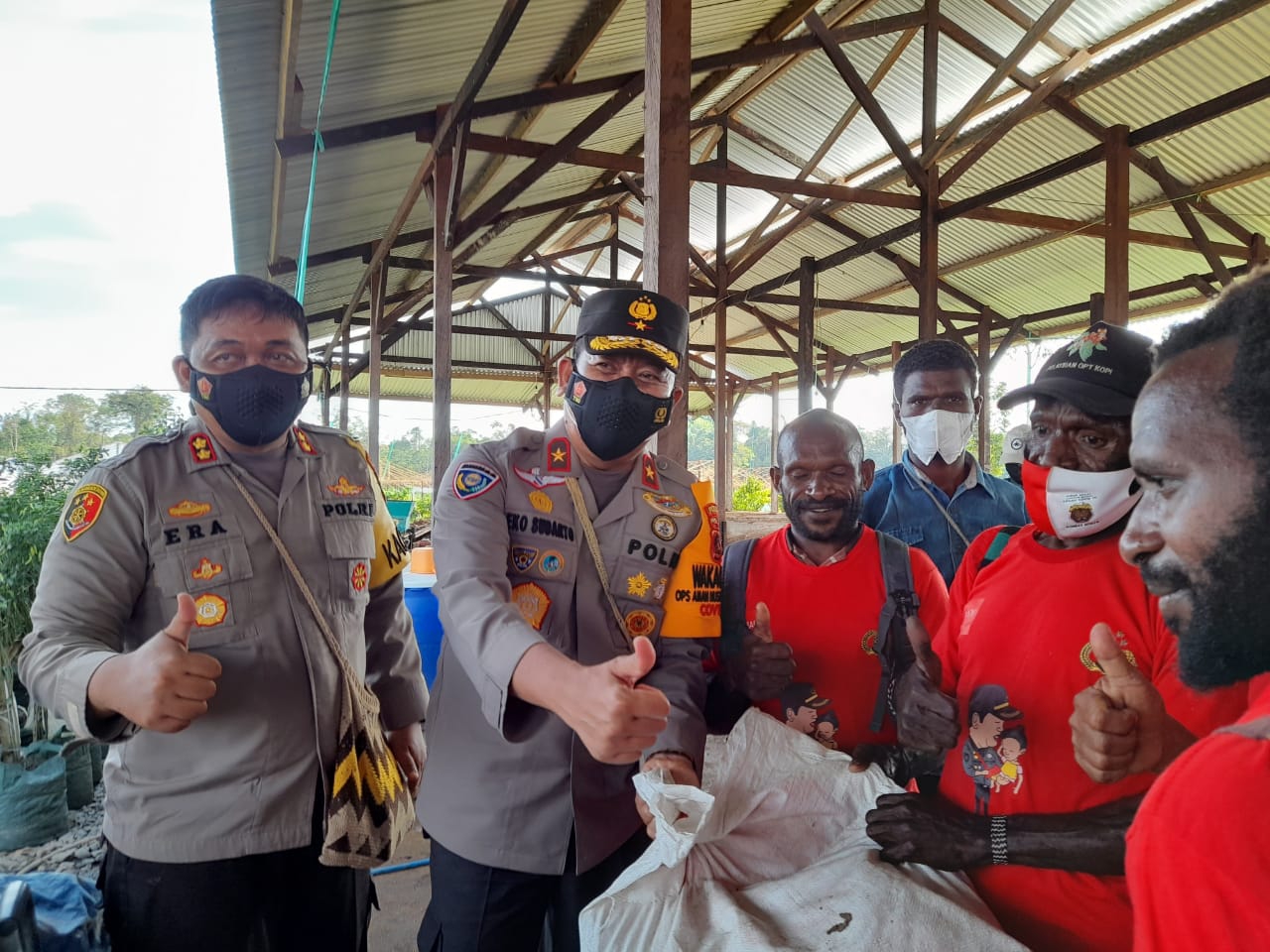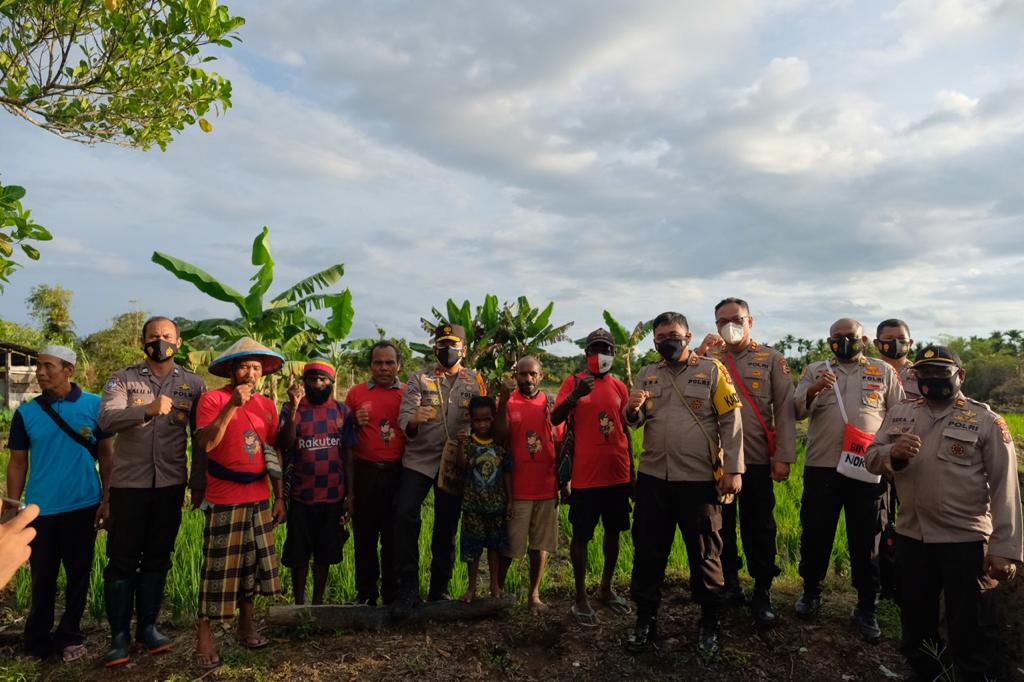 SuaraMabes, Papua | Kampung Mulia Kencana SP7 Distrik Iwaka Kabupaten Mimika, Wakapolda Papua Brigjen Pol. Dr. Eko Rudi Sudarto S.IK., M.Si, mengunjungi Petani Binaan Binmas Noken Polri guna memberikan sejumlah bantuan bibit sayur dan pupuk organik kepada petani setempat. Senin 22-03-2021,