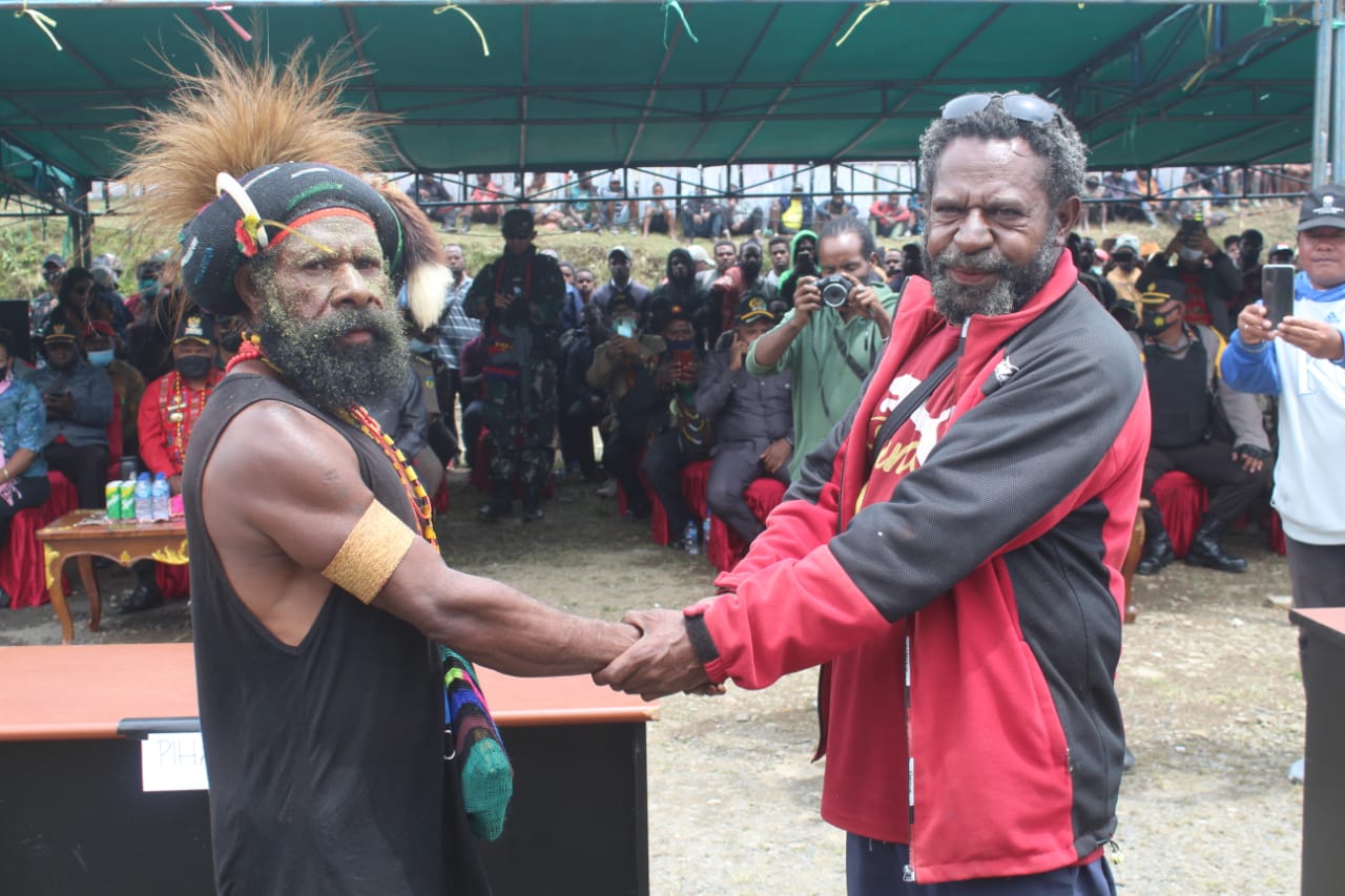 Bupati Puncak Jaya dalam sambutannya mengatakan bahwa ini akan menjadi sebuah catatan sejarah dimana kita masyarakat Kabupaten Puncak Jaya akan memasuki era baru dan melepaskan semua kebiasaan kita yang sebelumnya yang suka berperang menjadi suka hidup damai.