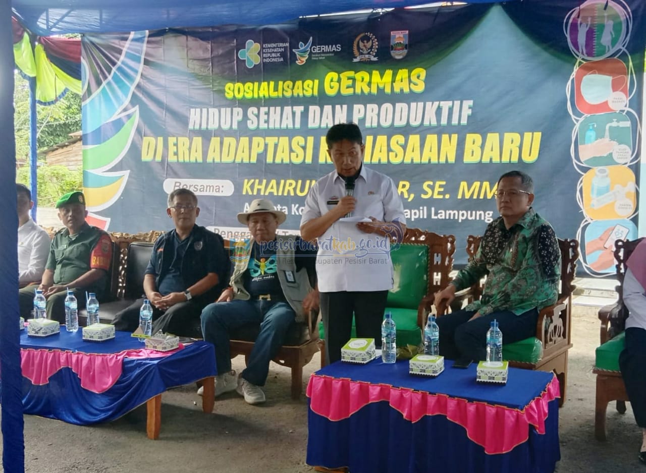 MediaSuaraMabes, Karya Penggawa – Kadis Kominfotik dan Persandian Pesisir Barat Suryadi, S.IP.,MM menginformasikan bahwa Bupati Pesisir Barat yang diwakili Wakil Bupati Pesisir Barat A. Zulqoini Syarif, S.H didampingi Anggota Komisi IX DPR RI Khoirul Muhtar, SE.,MM membuka secara resmi Sosialisasi Gerakan Masyarakat (Germas) Hidup Sehat dan Produktif di Era Adaptasi Kebiasaan Baru yang berlokasi di Pekon Penggawa V Tengah Kec. Karya Penggawa Kabupaten Pesisir Barat, Rabu (07/12/2022).
