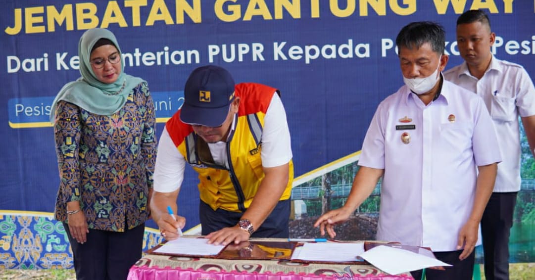 Jembatan gantung Way Biha di Kabupaten Pesisir Barat, Lampung diserahterimakan kepemilikannya oleh pemerintah pusat kepada Pemerintah Daerah Kab. Pesisir Barat.
