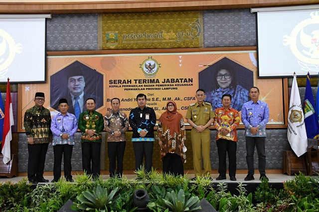 Wakil Bupati Pesisir Barat A. Zulqoini Syarif, S.H.,menghadiri Serah Terima Jabatan (Sertijab) Kepala Perwakilan Badan Pemeriksa Keuangan (BPK) Provinsi Lampung dari Andri Yogama, S.E., M.M., Ak., CSFA kepada Yusnadewi, S.E., M.Si., Ak.,CA.,CSFA yang berlokasi di Ruang Auditorium BPK Perwakilan Provinsi Lampung, Teluk Betung Bandar Lampung.