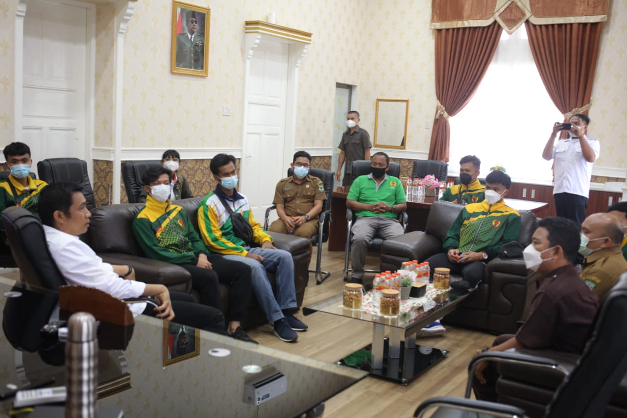 Walikota Pematang Siantar, H. Hefriansyah SE MM memberikan Piagam Penghargaan kepada OPD yang berprestasi diGedung Serbaguna Bapeda Kota Pematang Siantar pada hari Senin 01/08/21.