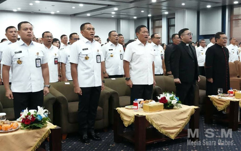MediaSuaraMabes, Jakarta – Wakil Menteri Pertahanan Donny Ermawan Taufanto menghadiri Perayaan Natal Bersama Umat Kristiani Kementerian Pertahanan Republik Indonesia di Aula Kejuangan, Gedung Pierre Tendean, Jakarta, Kamis (22/1).