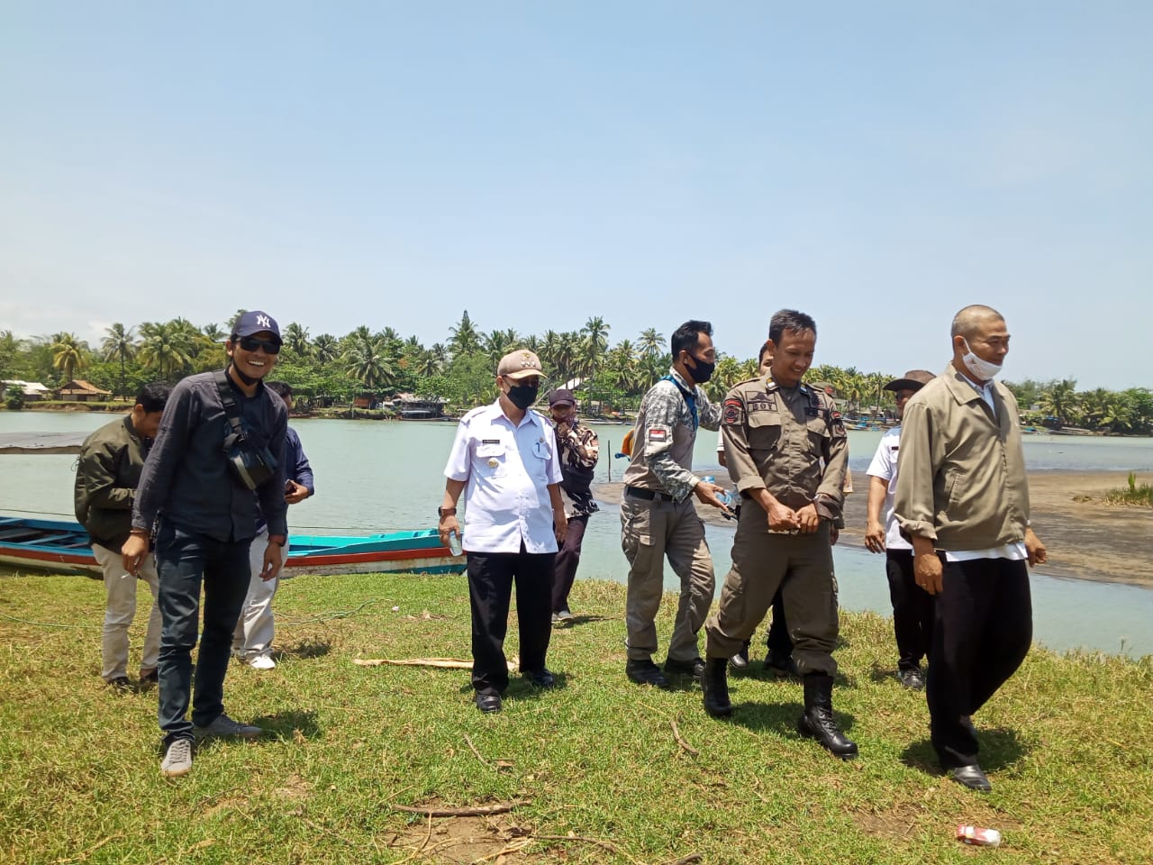 A Rudian N di dampingi kades Cibitung, H. Iji Pahrudin, mengunjungi taman wisata Cemara yang berada di aliran sungai Cikaso Ciroyom, Desa Cibitung, Kabupaten Sukabumi Jawa Barat, Rabu 22/09/2021.