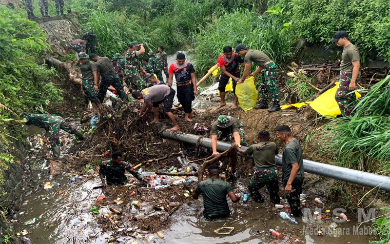 MediaSuaraMabes, Nabire ~ Menindaklanjuti perintah Komando atas, Kodim 1705/Nabire menggelar jumat bersih dengan melibatkan Yonif 753/AVT,Polres Nabire dan Denzipur 12 OHH dalam upaya untuk menjaga lingkungan tetap bersih. untuk sasaran karya bakti jumat bersih kali ini membersihkan sampah di sungai di Kelurahan Karang tumaritis, Distrik Nabire, Kabupaten Nabire, Provinsi Papua Tengah.