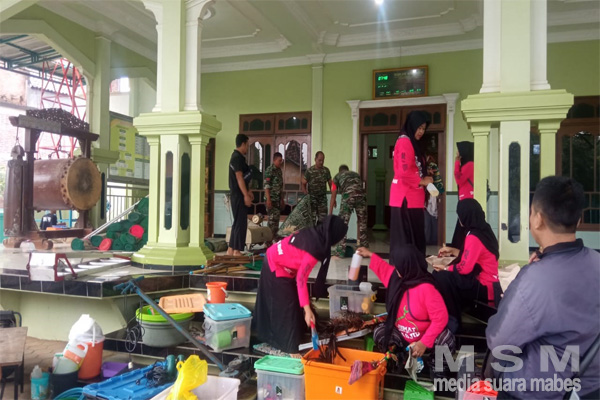 Dalam pelaksanaannya, anggota Koramil 05/Mayong bersama tim resik-resik dan juga masyarakat melakukan pembersihan mulai di seputaran halaman masjid mulai dari tempat wudhu, bagian dalam masjid.