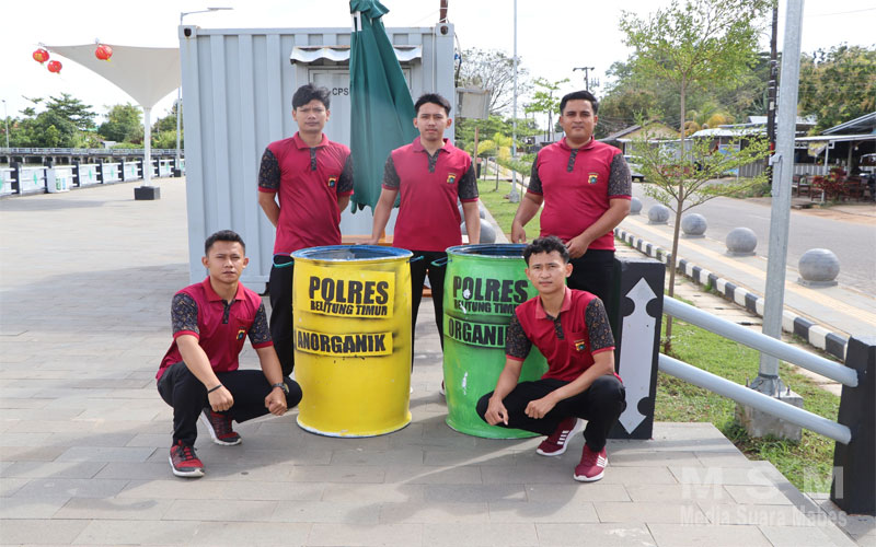 Wujudkan Program ASRI, Polres Beltim Tebar Tong Sampah Di Fasilitas Umum