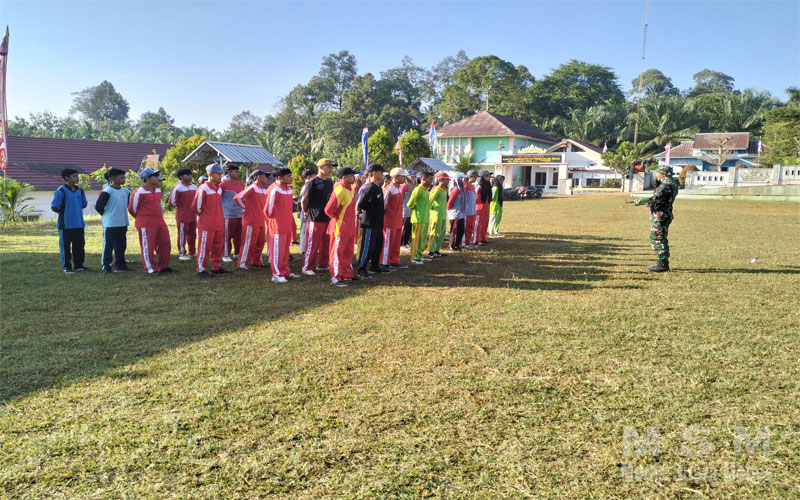 MediaSuaraMabes, Tanggamus – Jelang Upacara pengibaran bendera 17 Agustus tahun 2024, Satgas TMMD ke 121 Kodim 0424/Tanggamus ikut melatih para calon pasukan pengibar bendera Kec. Pagelaran Utara di Lapangan Merdeka Pekon Fajar Mulya, Kecamatan Pagelaran Utara, Sabtu (10/8/24).